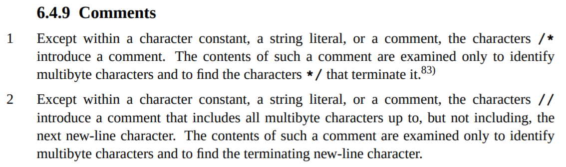 Glancing back at the C spec on comments, though, we find an interesting example in the non-normative examples section: