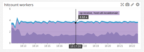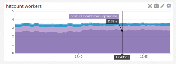 We can immediately see that we’re spending most of our time talking to the database – 2.7s/s or (dividing by 4) about 68% of our time. And the stacked graphs give a very clear visualization of the overall usage of the system.